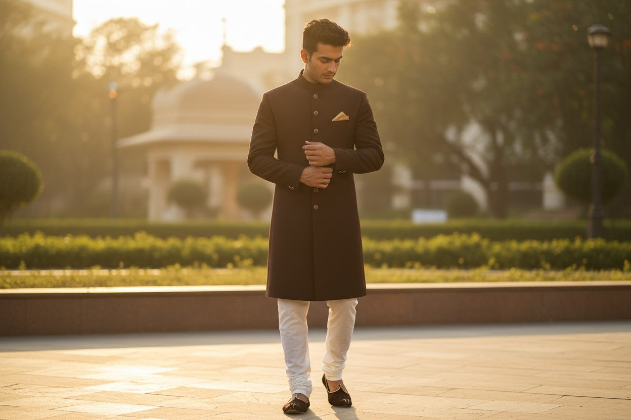 Chocolate Brown Classic Achkan for Men – Timeless Wedding Wear