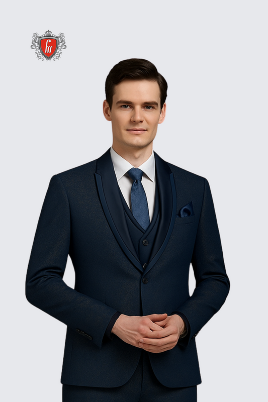 Luxury Men's Navy Blue 3-Piece Designer Suit – Crafted for Timeless Celebrations