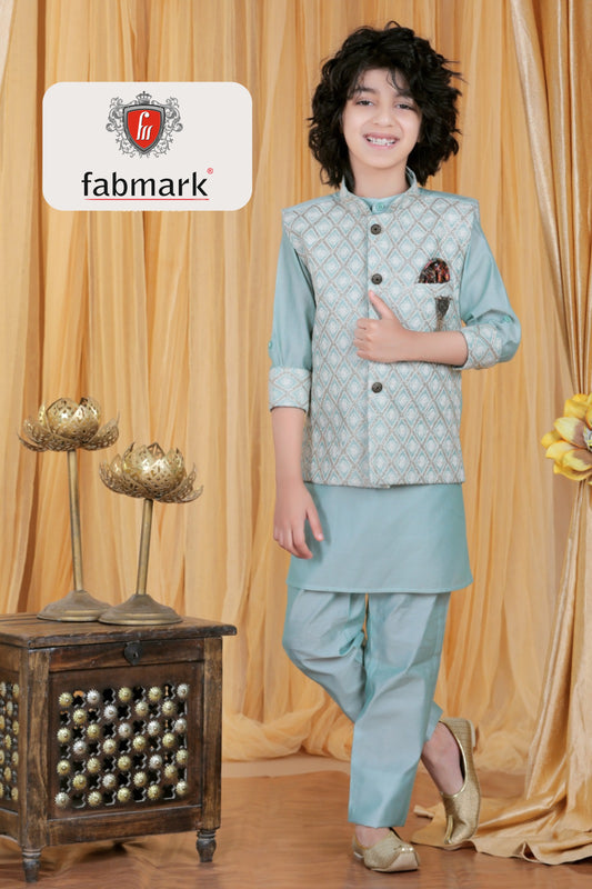 Aqua Blue Chikankari Kurta Pajama for Men – Mirror Work Festive Wear