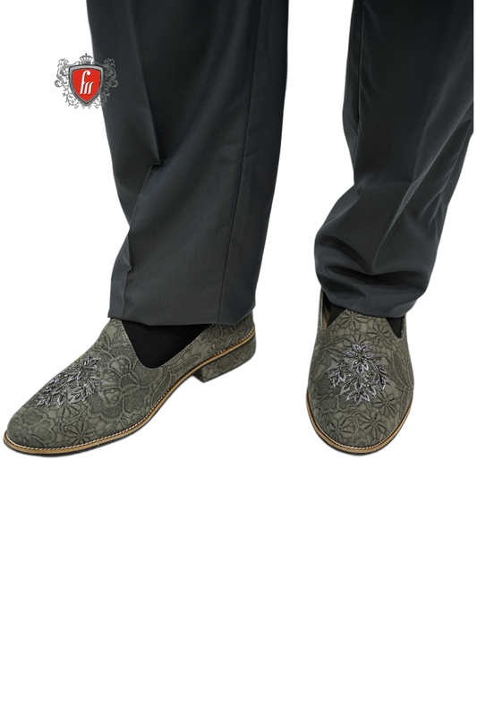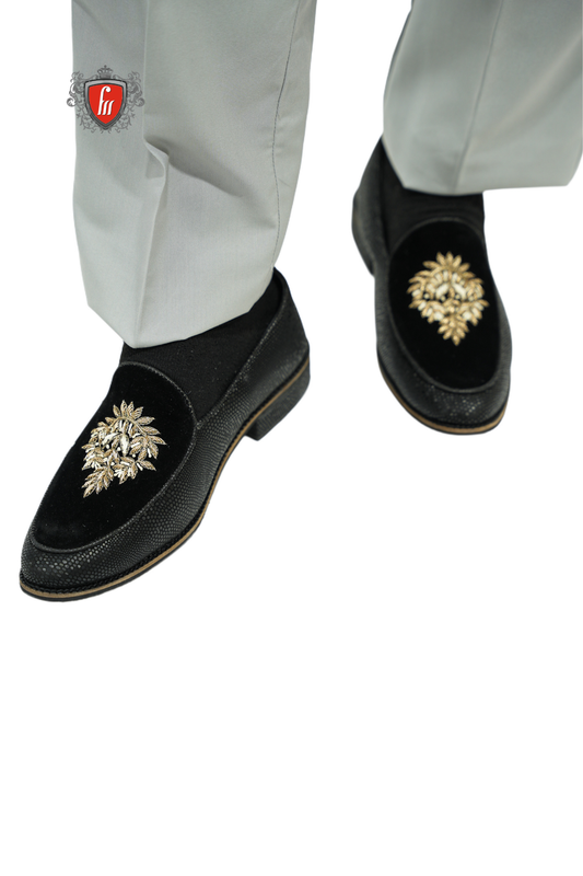 Black Velvet Jutti with Intricate Bead Embroidery Panel