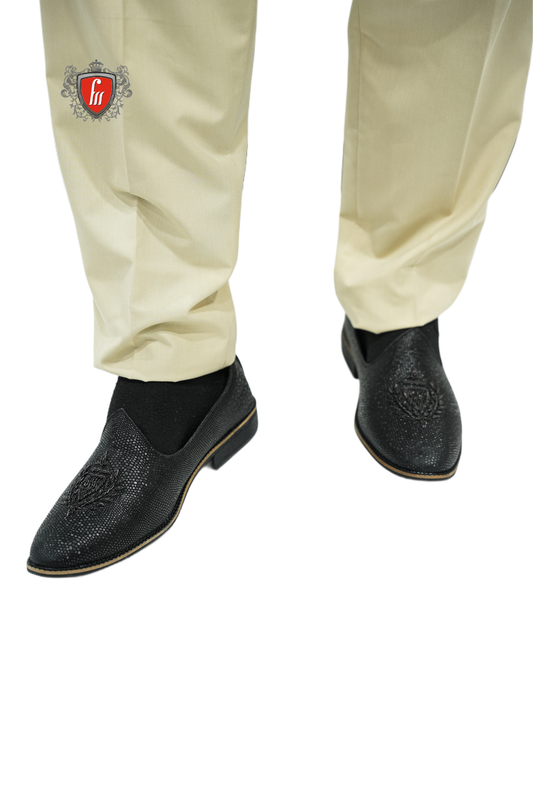 Black Textured Mojari – Classic Ethnic Footwear for Men