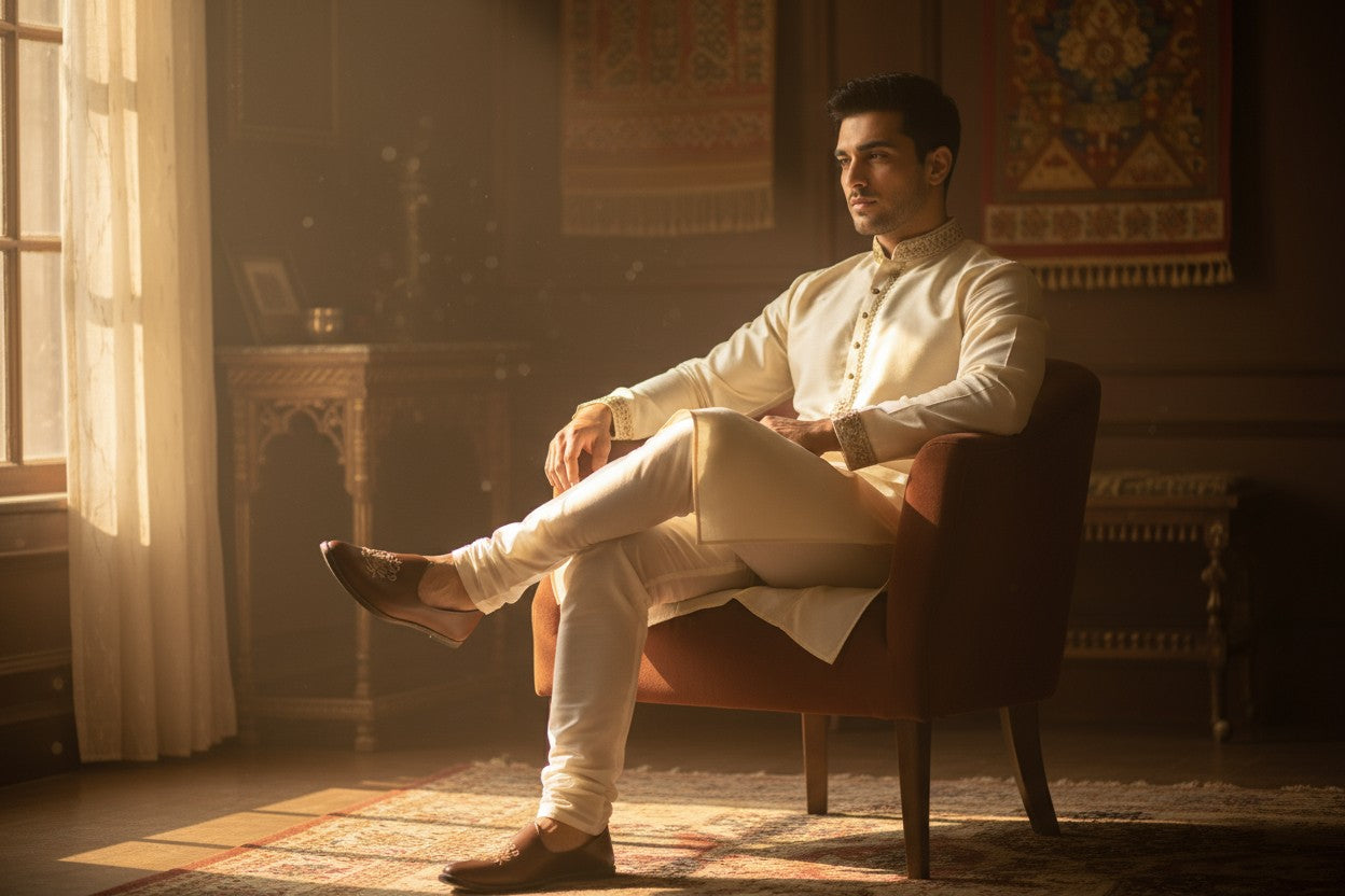 Designed and tailored by experts in men’s fashion, every suit, kurta, and coat reflects genuine craftsmanship and timeless attention to detail.