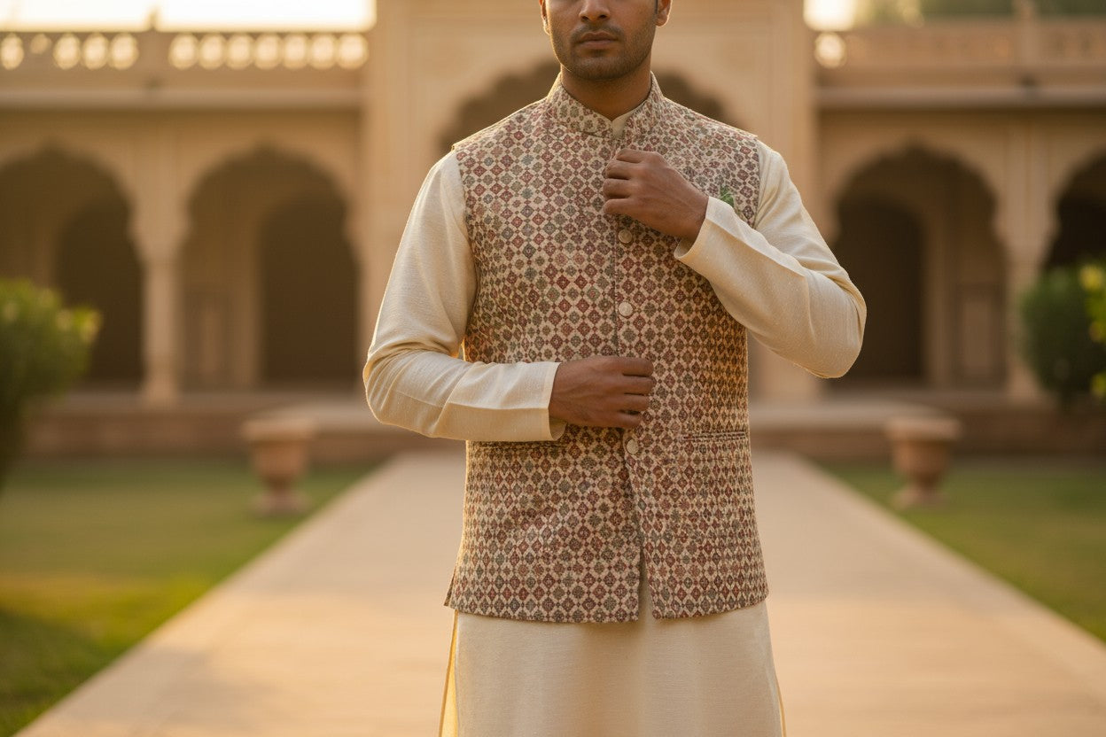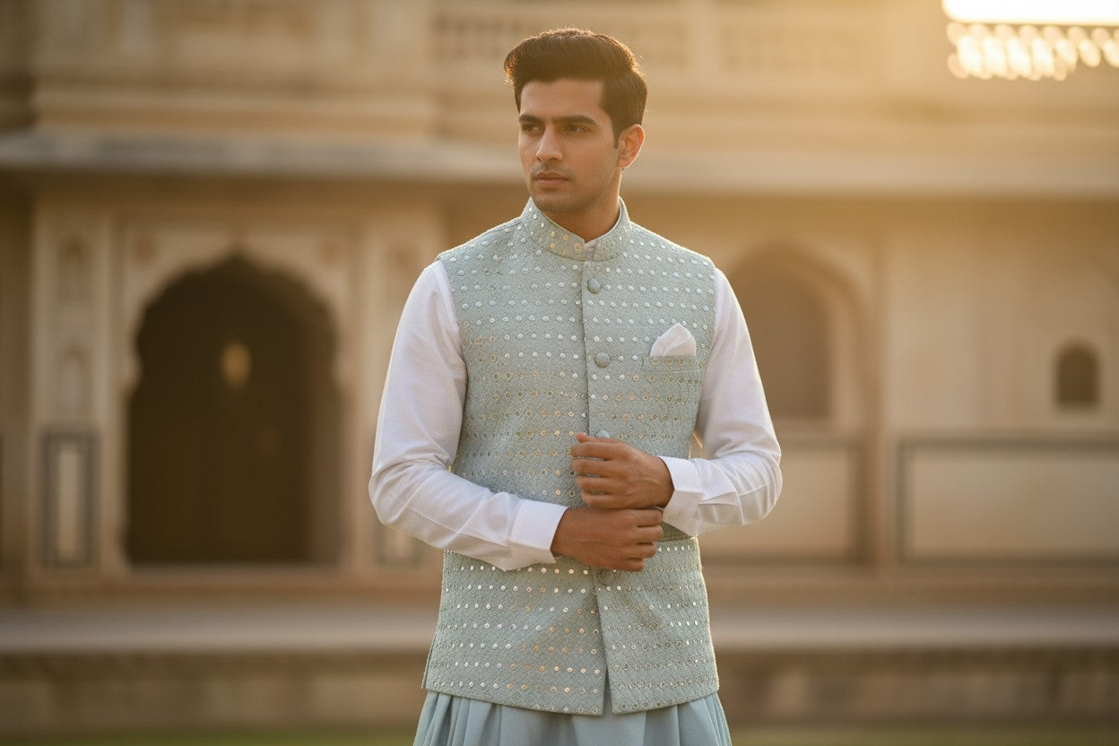 Discover tailored Nehru jackets crafted from premium fabrics — perfect for weddings, formal events, and festive celebrations.