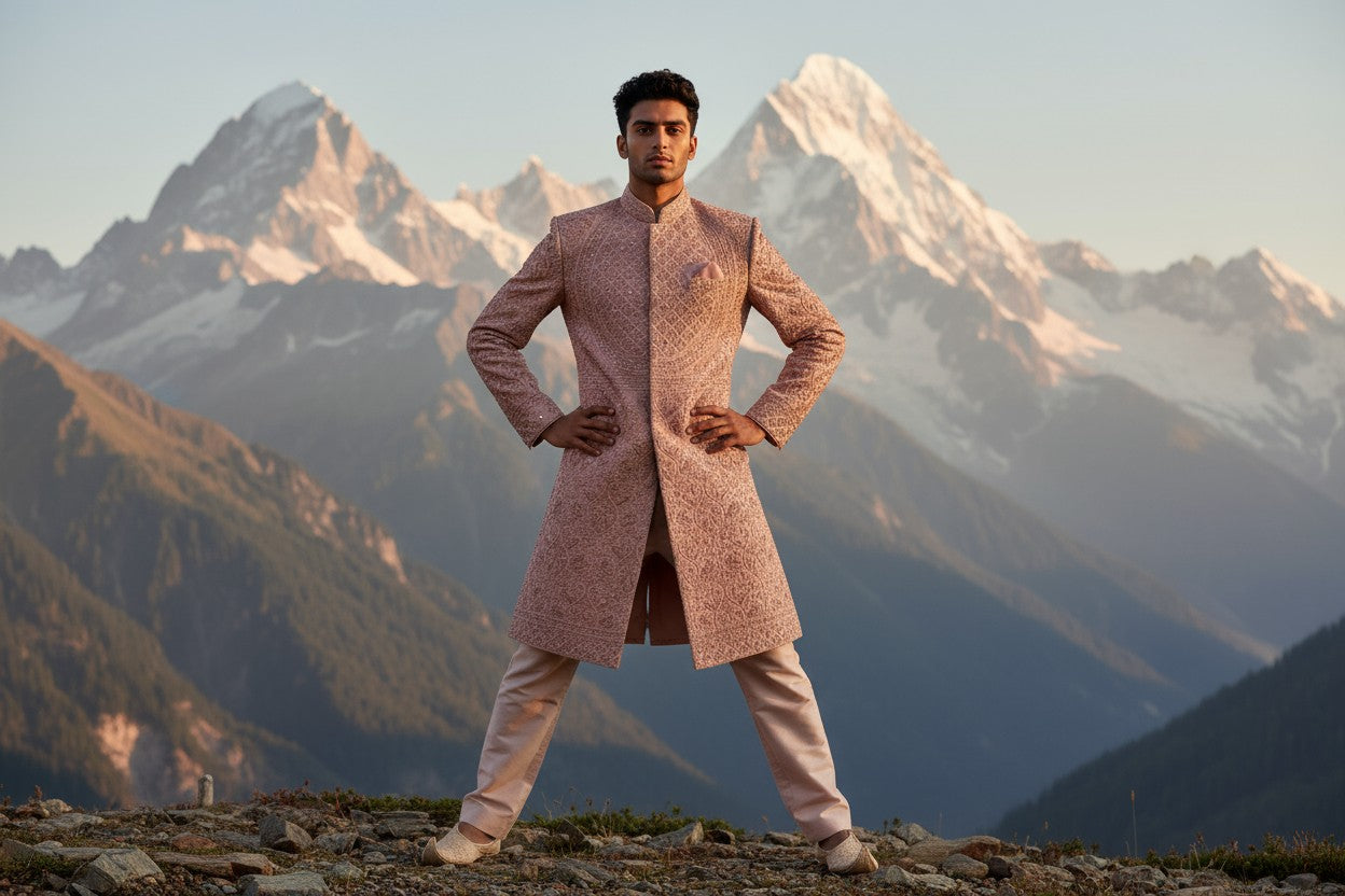 Dusty Rose Embroidered Sherwani for Men – Elegant Handcrafted Attire