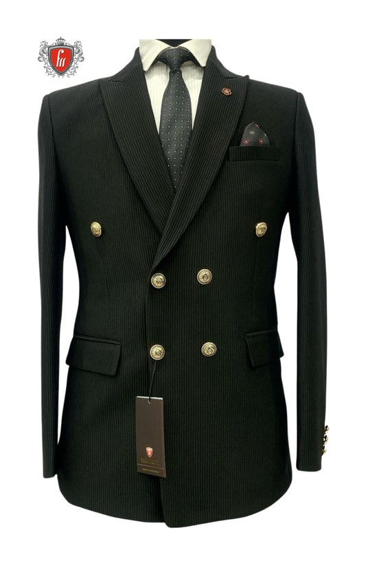 Men’s Black Pinstripe Double-Breasted Suit – Modern Fit Formal Wear