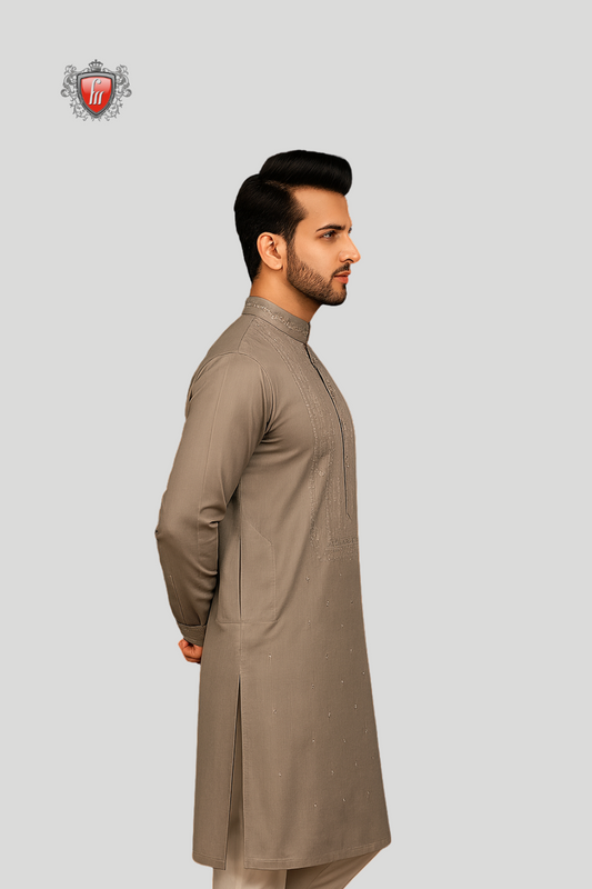 Men’s Light Brown Chikankari Kurta – Heritage Embroidery, Festive Wear