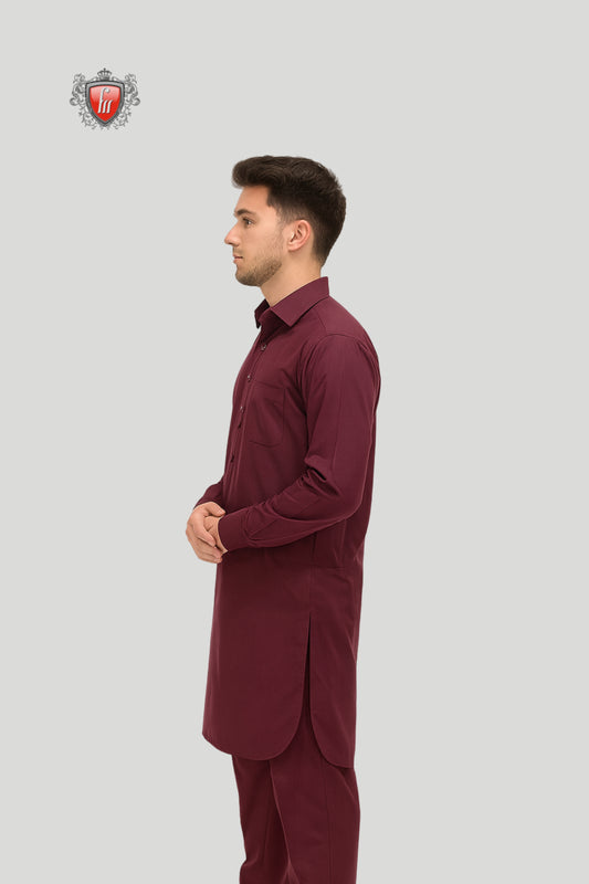 Men’s Majestic Maroon Kurta Pajama – Bold Elegance Redefined