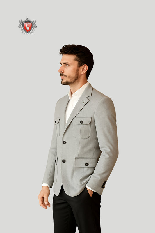 Men’s Grey Suede Jutti – Golden Dabka Handwork, Festive Wear