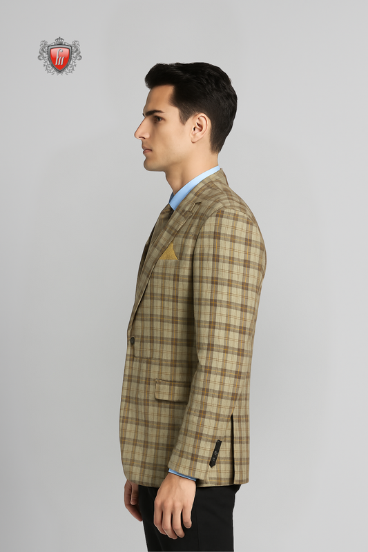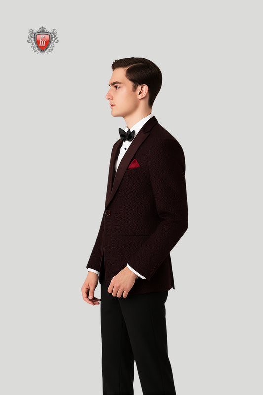 Blazer élégant marron texturé pour homme avec revers en satin | Vêtements de cérémonie haut de gamme