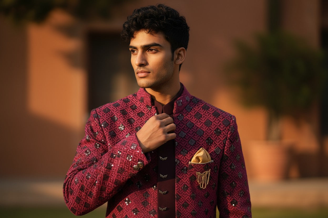 Discover the perfect fusion of Indian tradition and Western tailoring. Designed for weddings, receptions, and festive occasions — crafted with precision and style.
