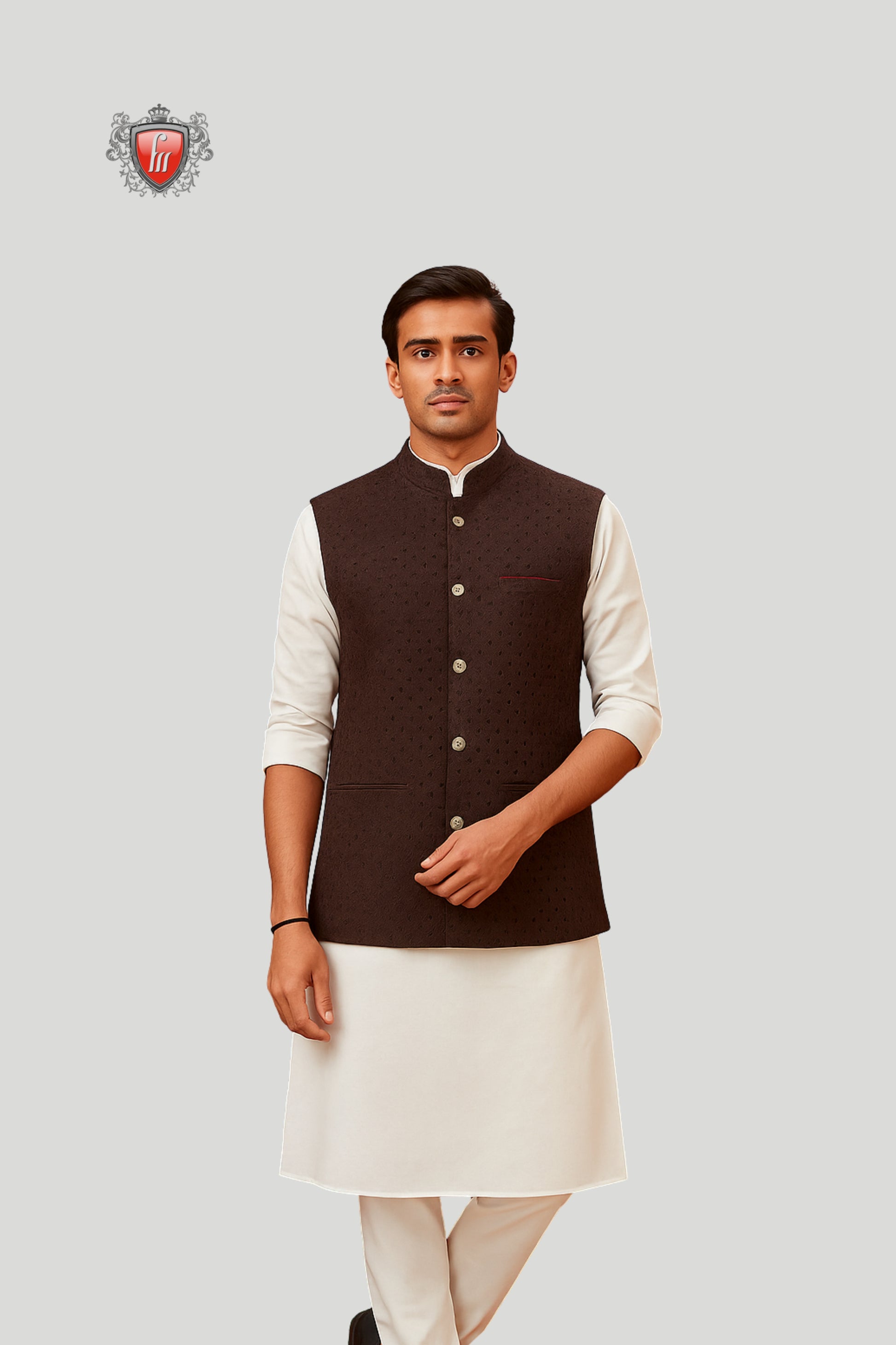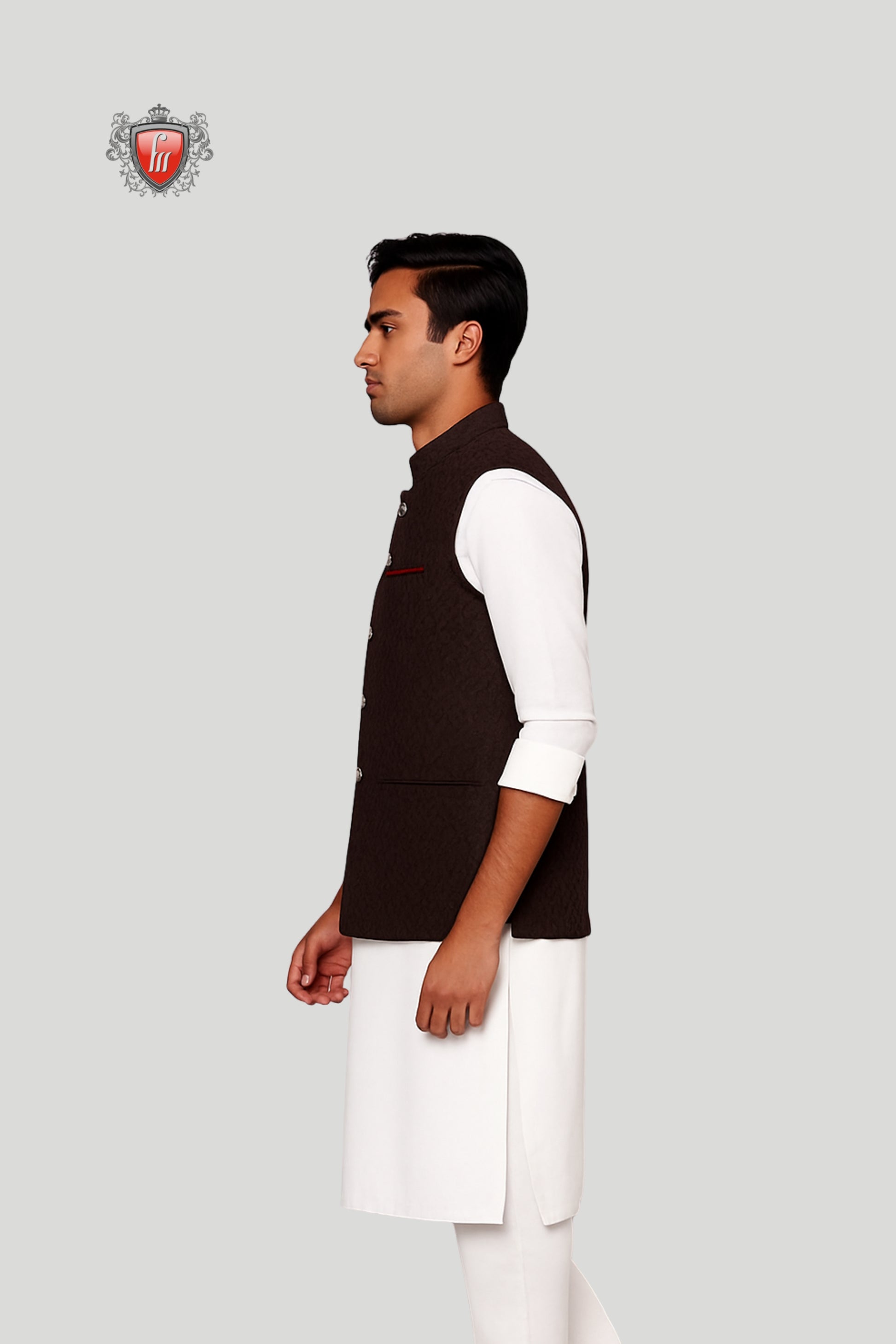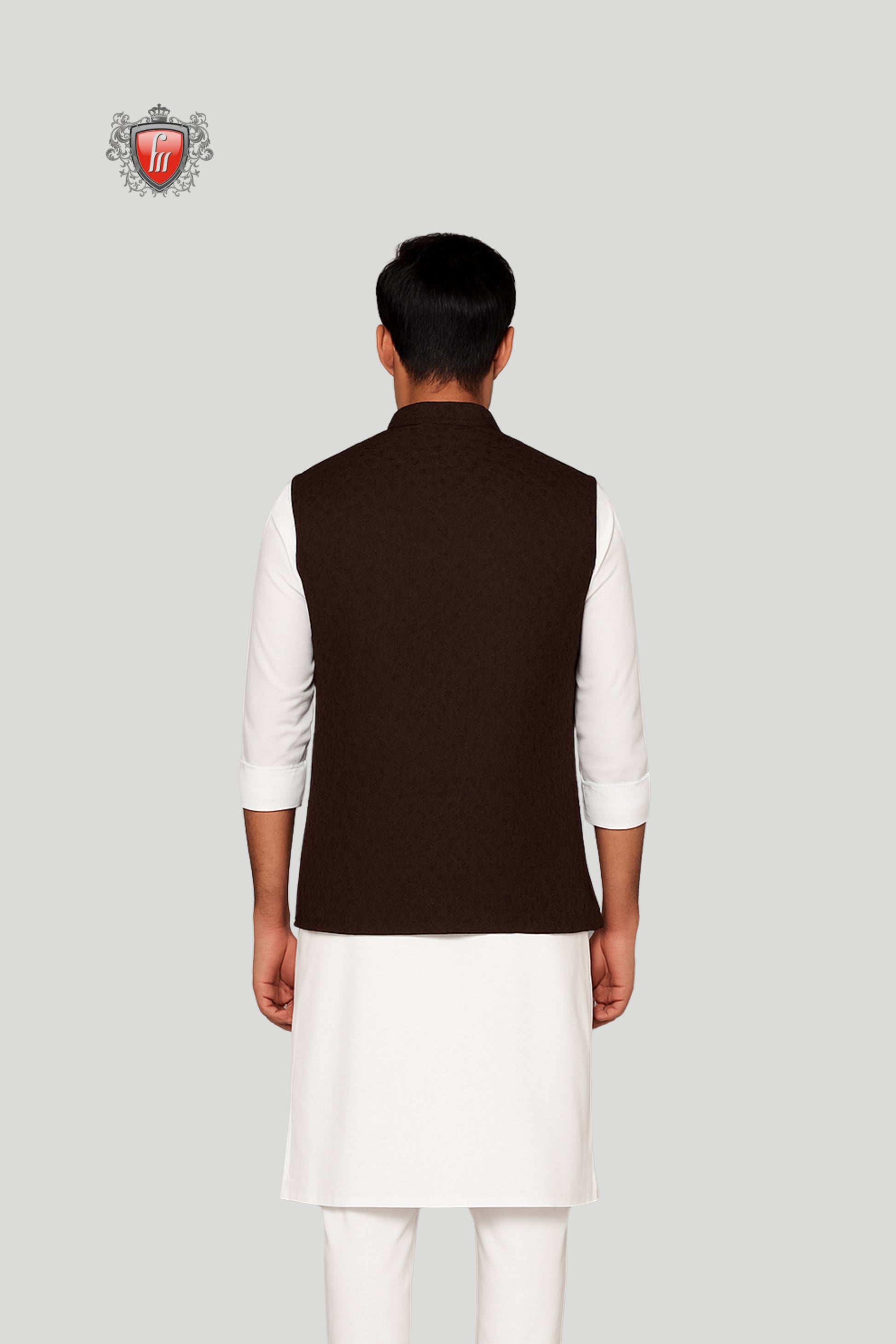 Chocolate Brown Textured Waistcoat – Modern Classic Ethnic Style