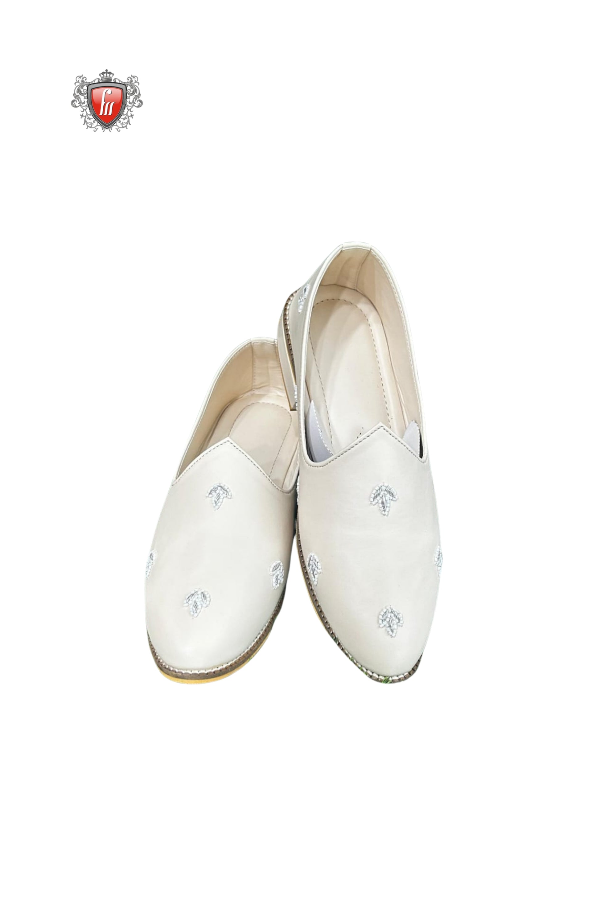 Fabmark Cream Jutti with Silver Embroidery – Subtle Grace for Traditional Wear