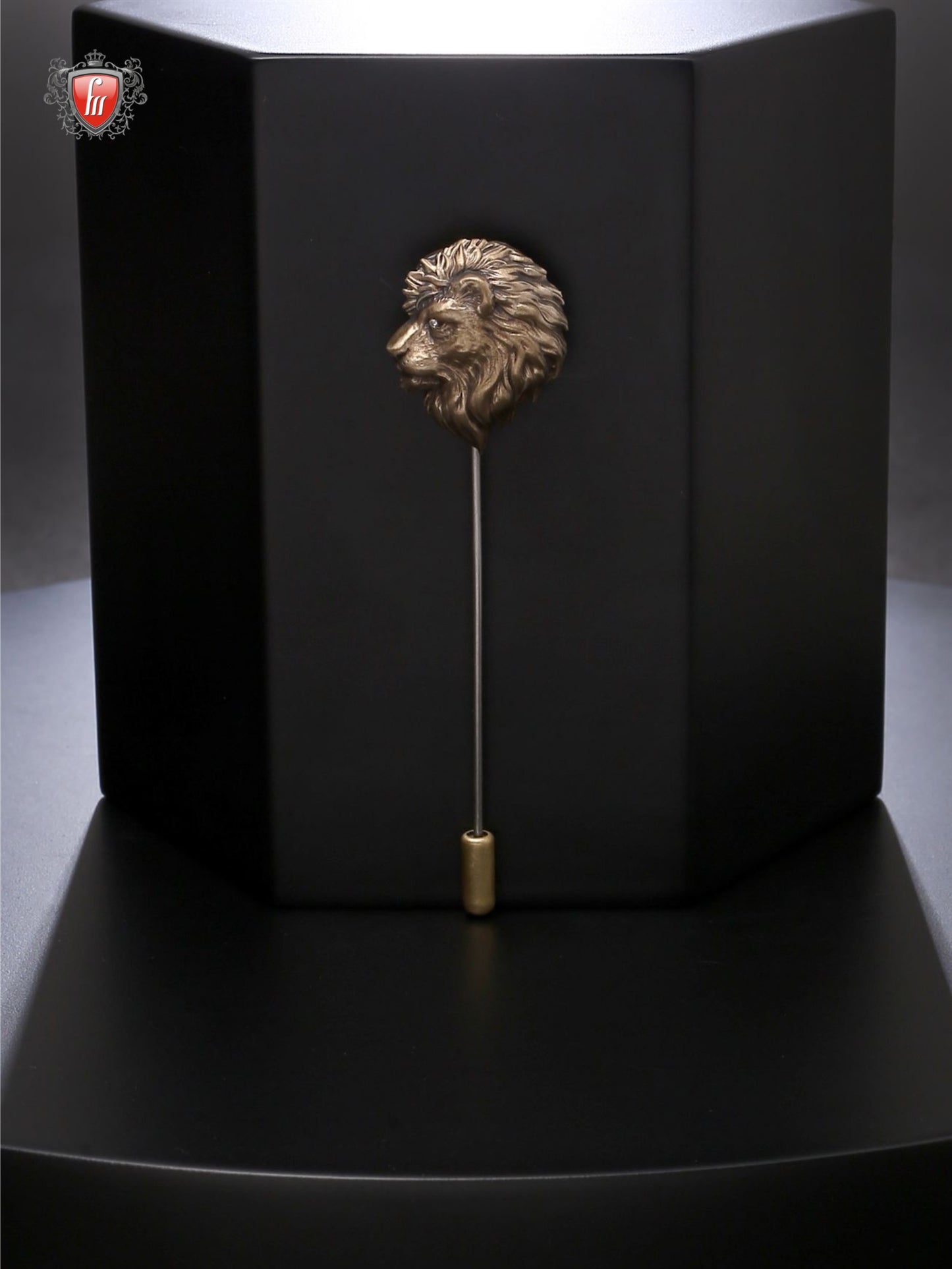 Majestic Lion Head Antique Gold Lapel Pin for Men