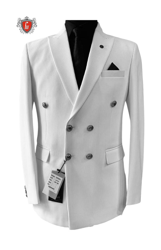 Men’s White Double-Breasted Textured Blazer – Modern Elegance with Classic Detailing