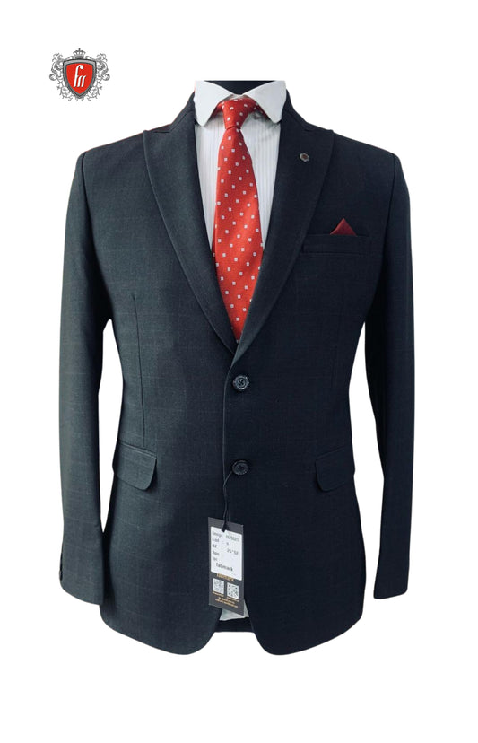 Men’s Modern Slate Check Blazer – Tailored Fit Wedding & Office Wear