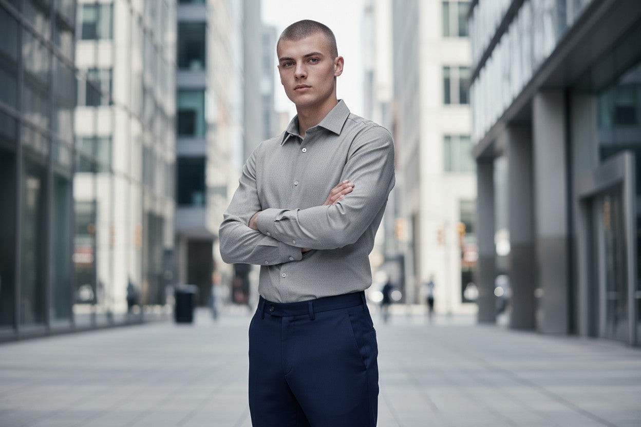 Men’s Grey Dress Shirt – Slim Fit Formal Office Shirt