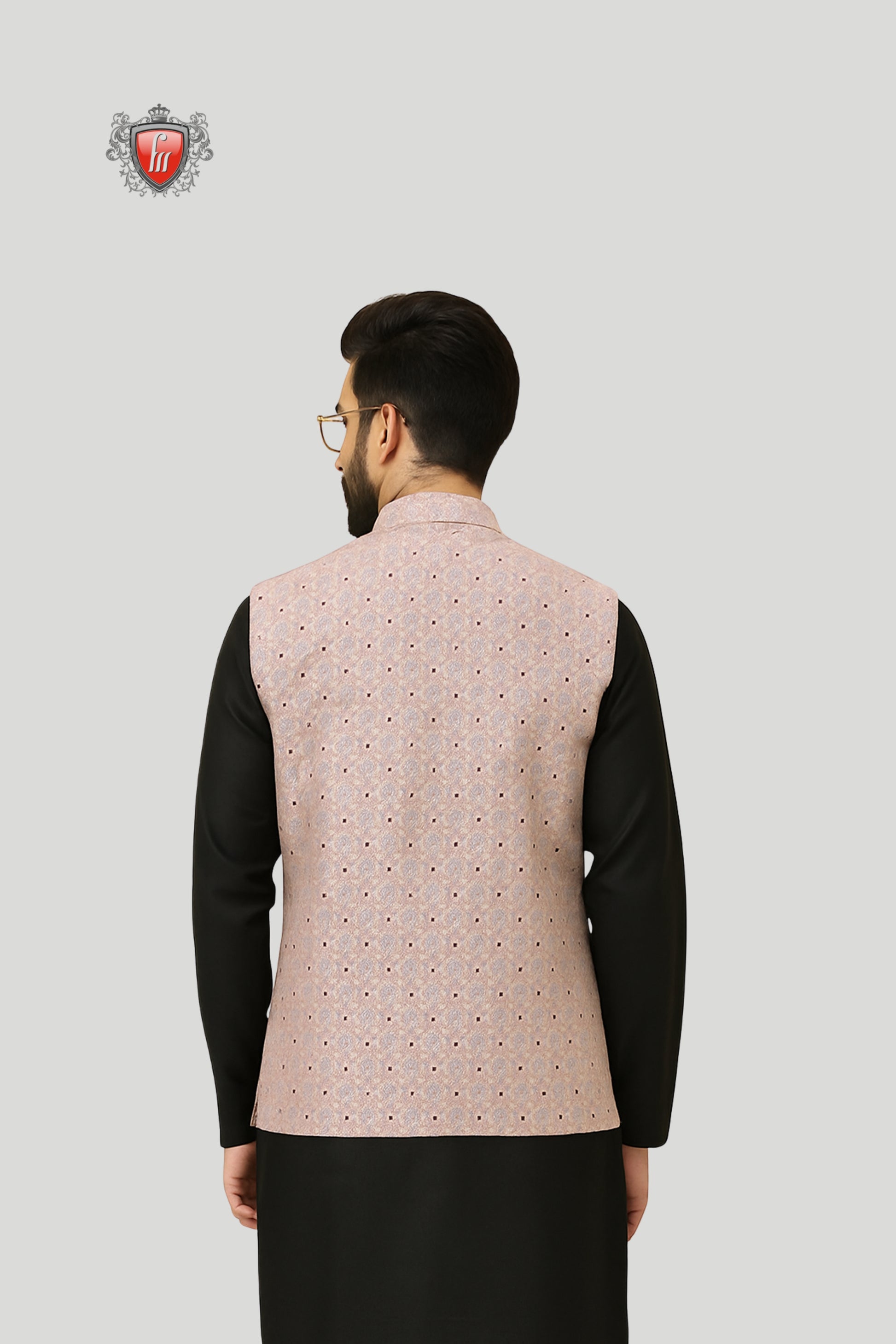 Dusty Pink Printed Waistcoat with Subtle Motifs – Elegant Festive Wear