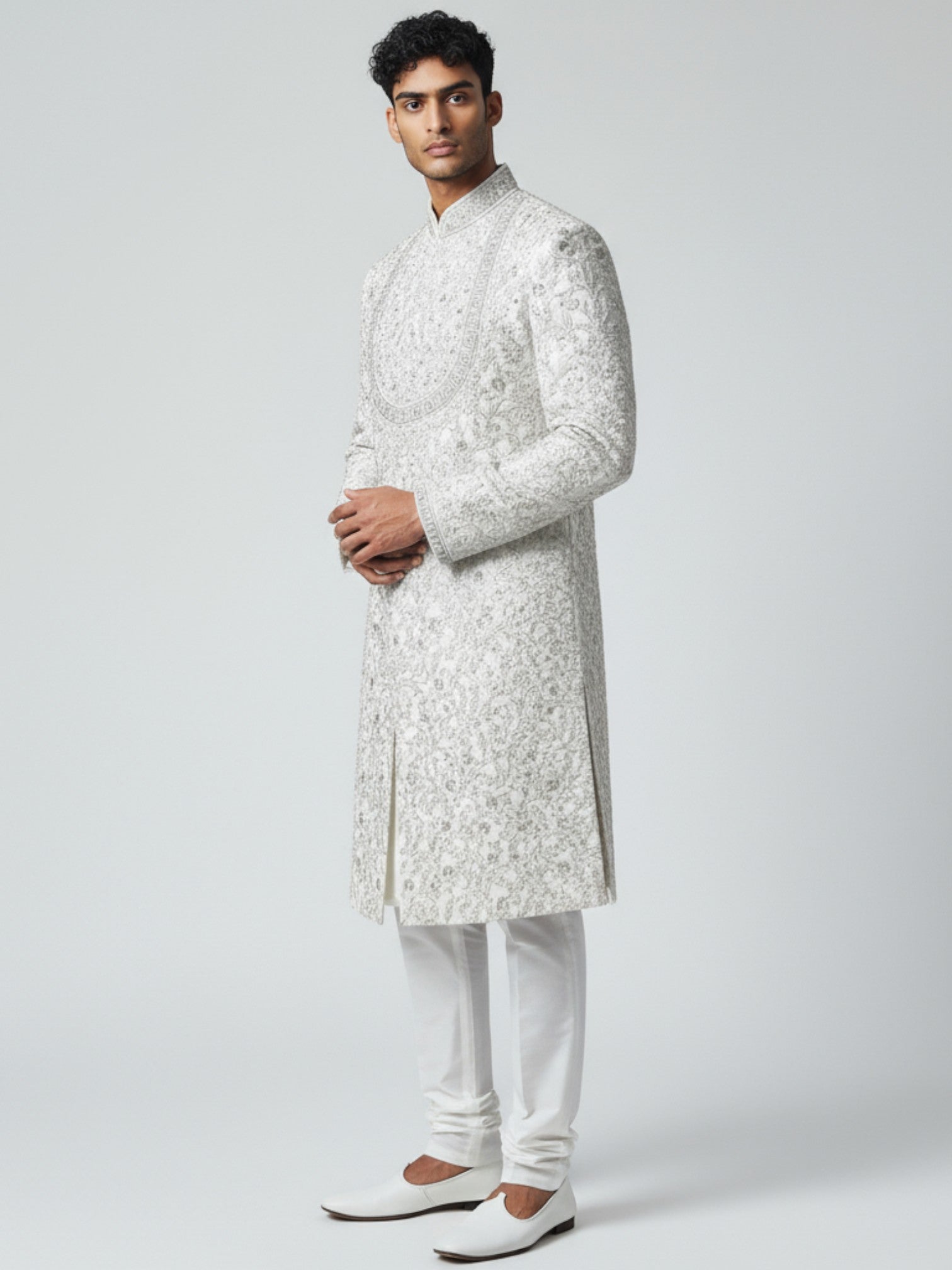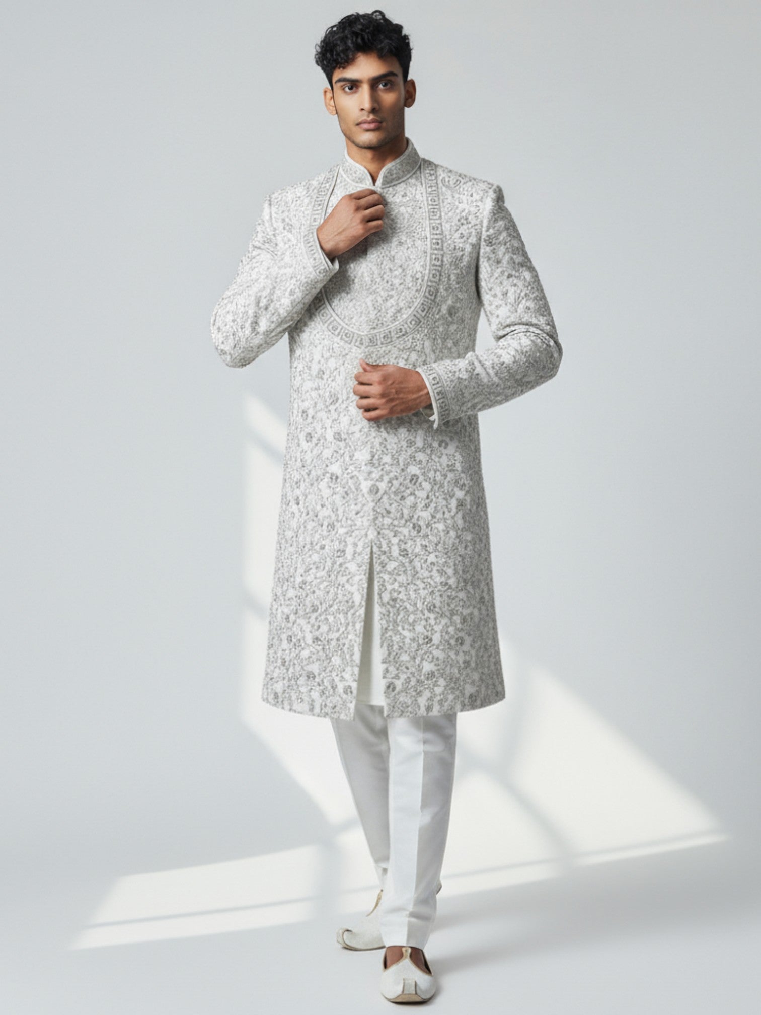 Ivory Embroidered Sherwani for Men – Regal Handcrafted Wedding Wear