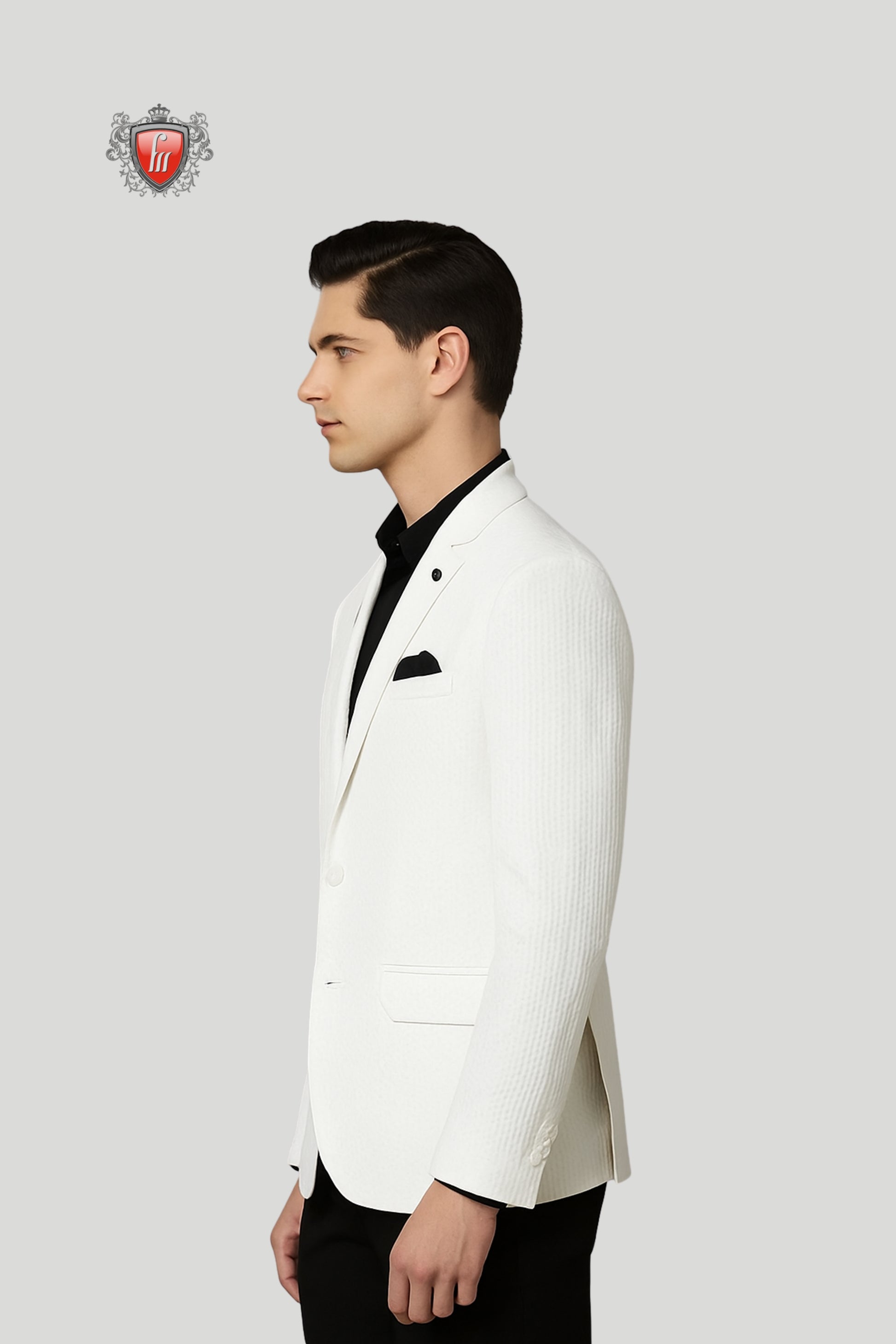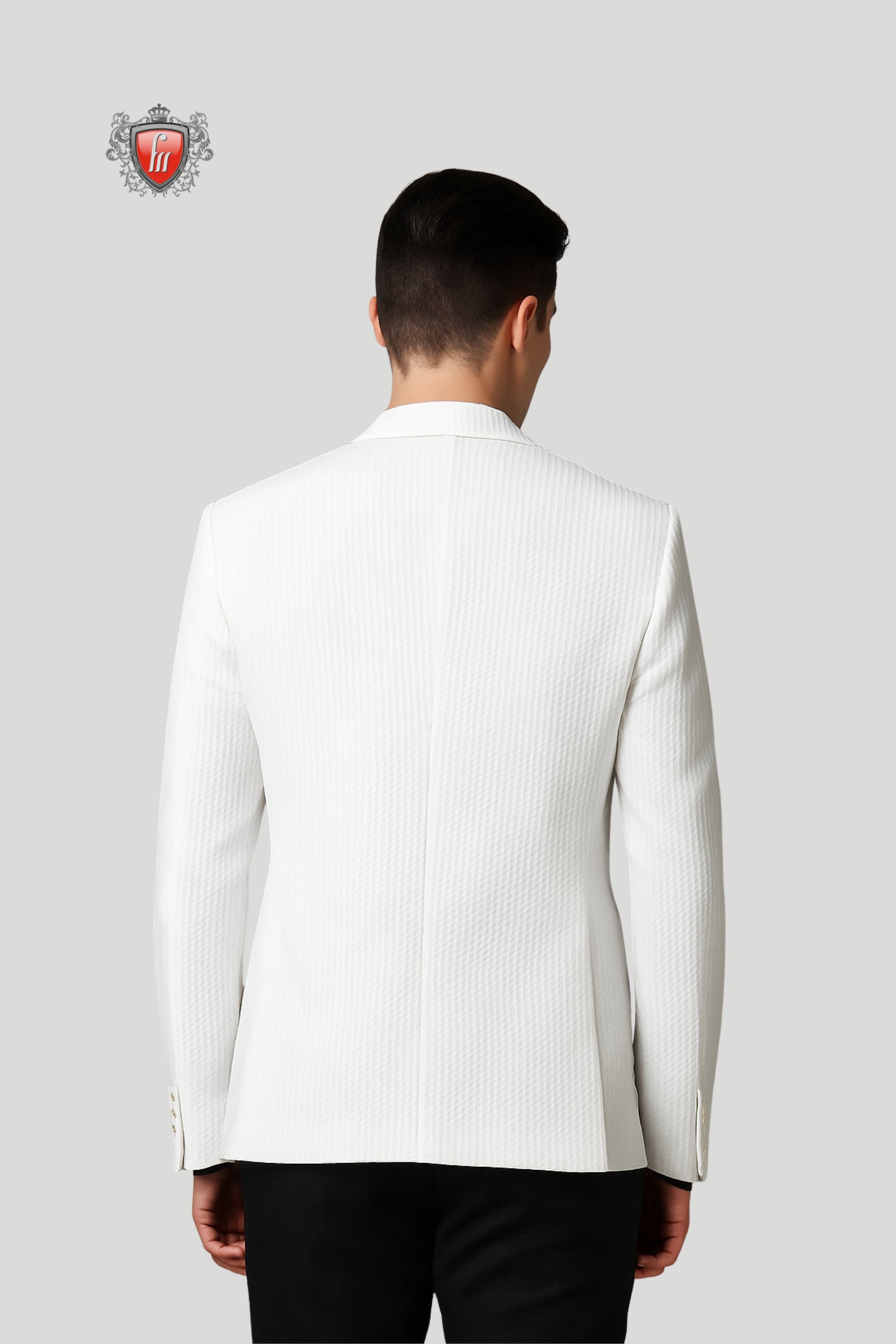 Men’s White Textured Blazer – Sharp Formalwear with Black Accents