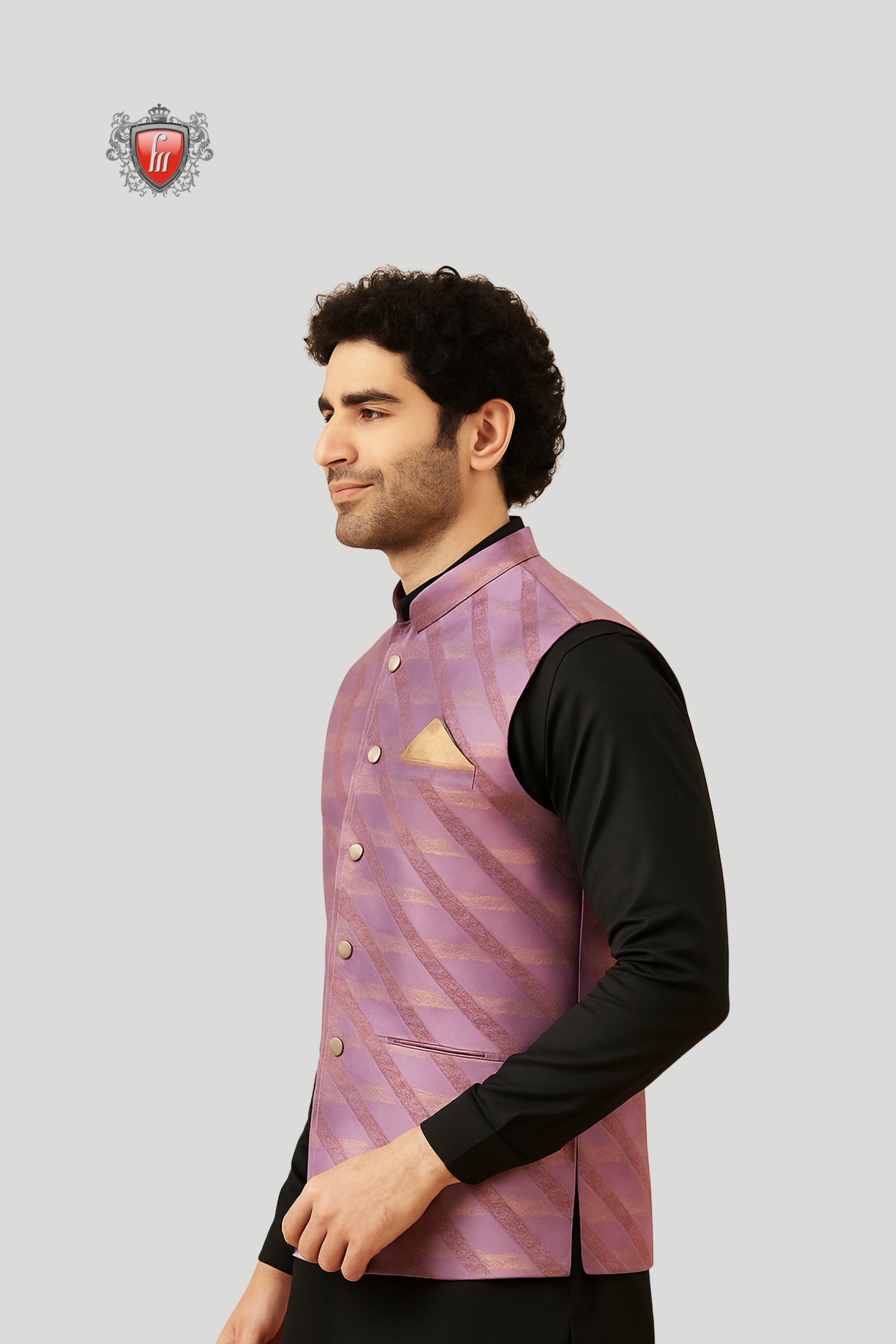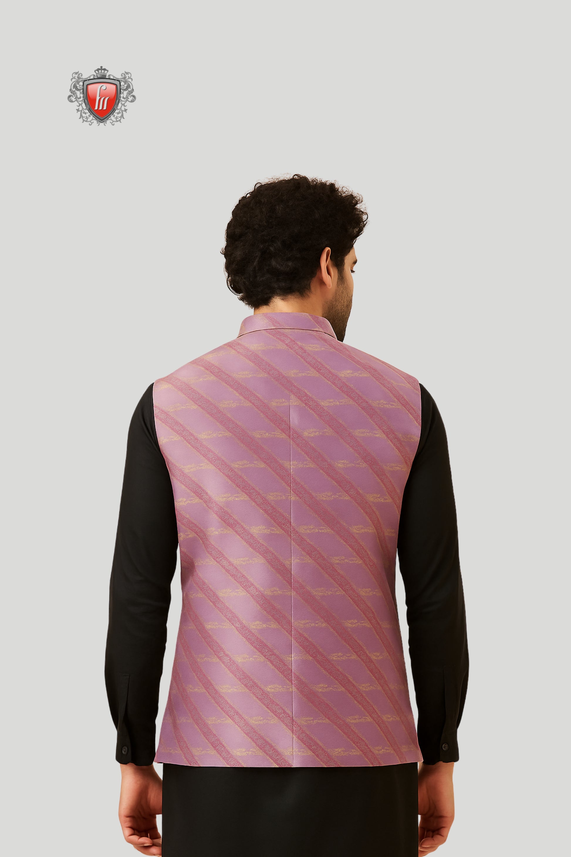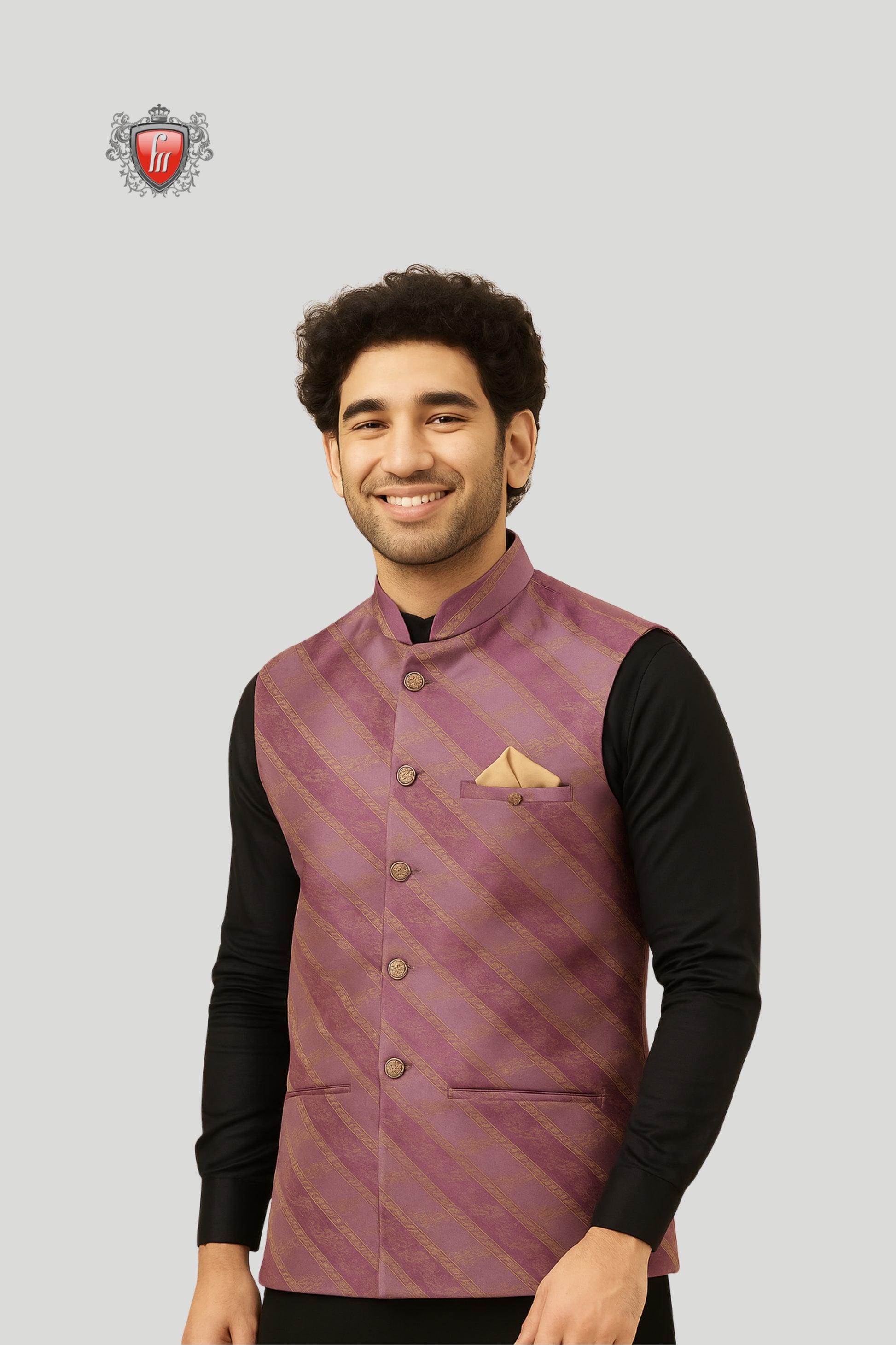 Purple Striped Waistcoat with Golden Accents – Stylish Festive Elegance
