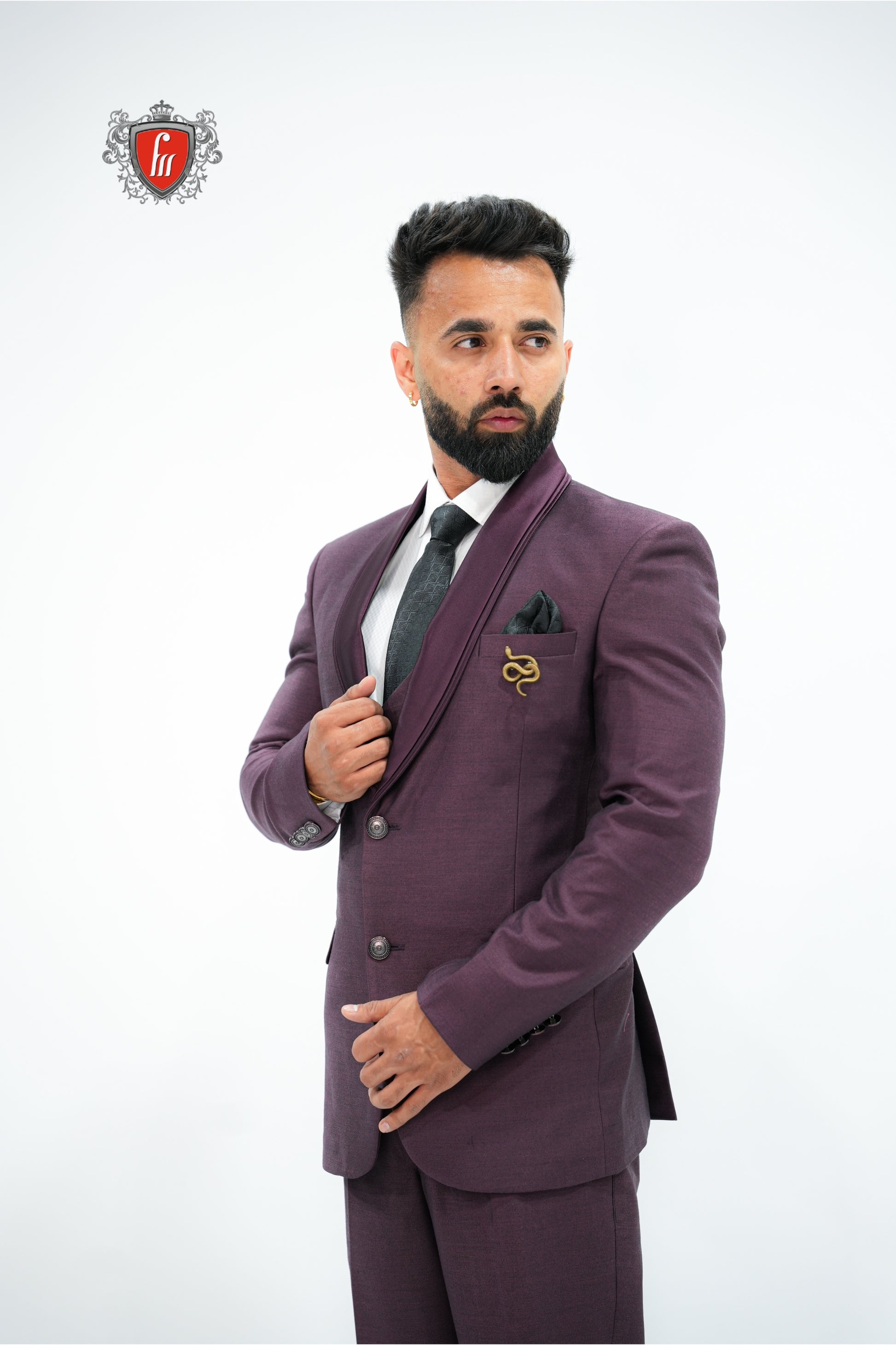 Men’s Wine Maroon Suit with Shawl Collar – Refined Style for Special Evenings