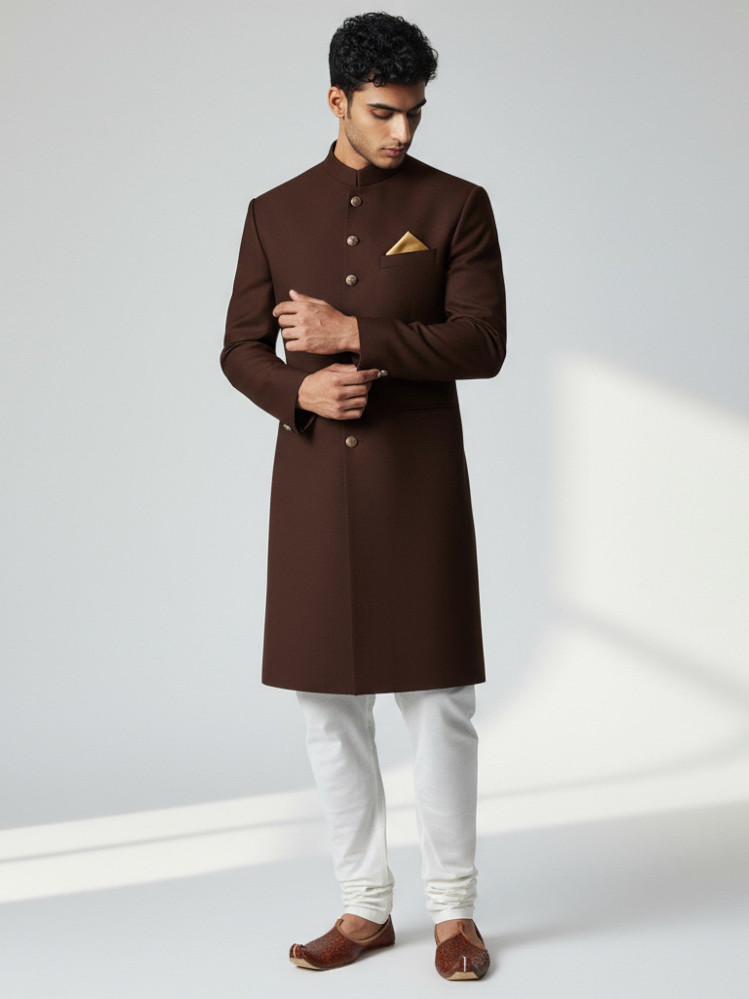 Chocolate Brown Classic Achkan for Men – Timeless Wedding Wear