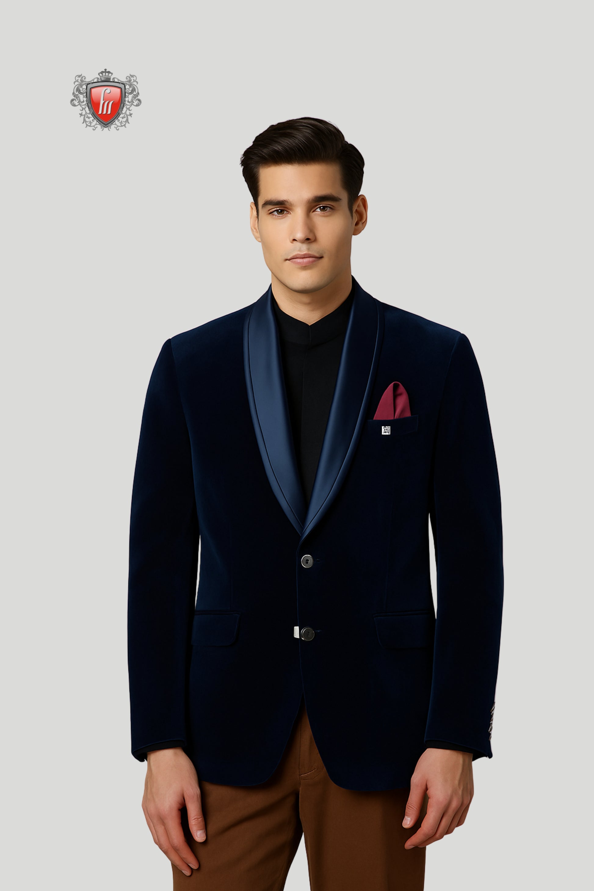 Make a statement at formal events with this navy blue velvet blazer, designed for men who appreciate refined luxury. Featuring smooth satin shawl lapels, a deep navy tone, and a tailored fit, this blazer exudes sophistication and charm. The contrasting maroon pocket square adds a bold touch, making it ideal for weddings, receptions, and high-end gatherings. Pair it with classic trousers or chinos for a timelessly elegant look.