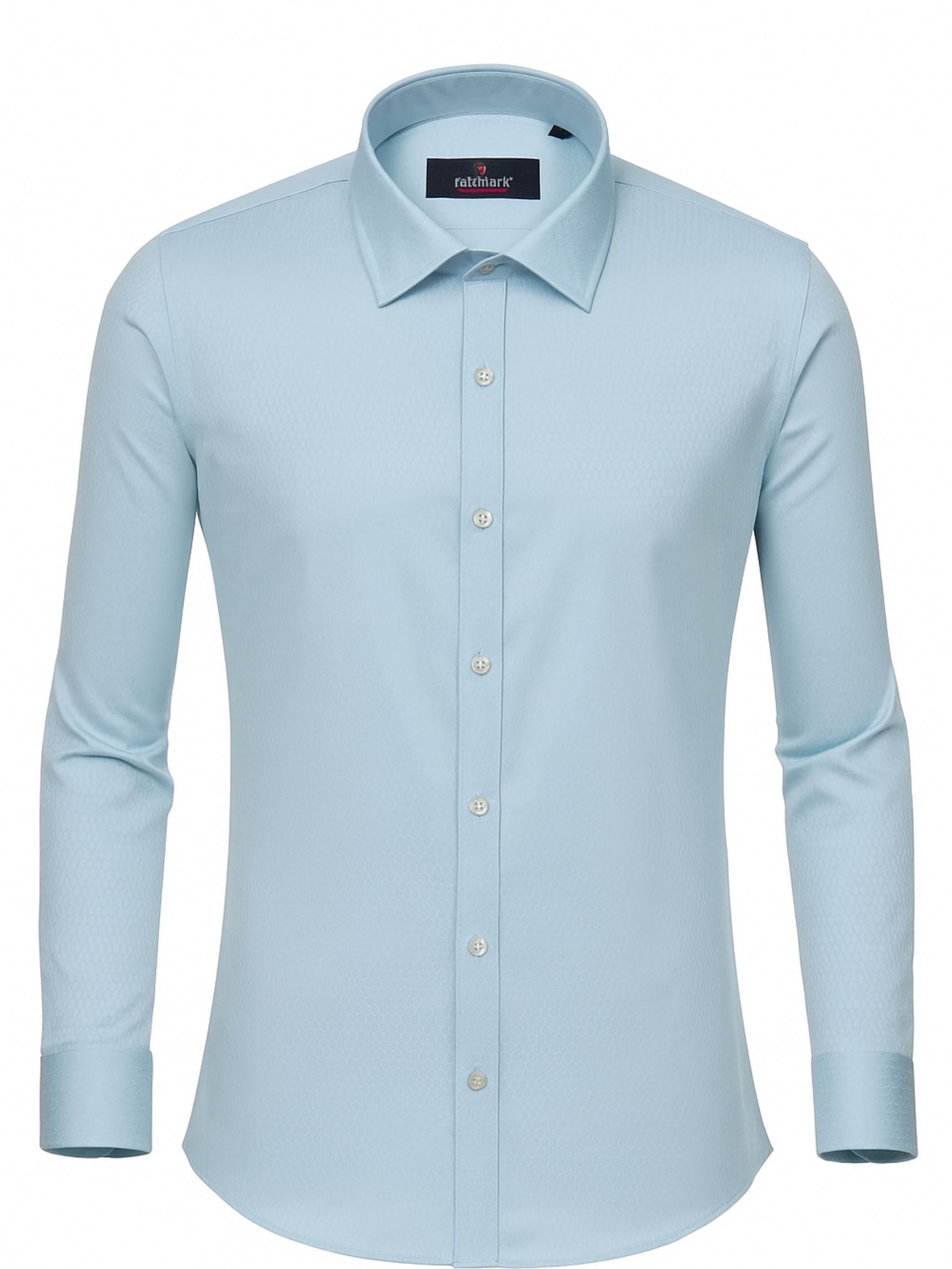 Crafted from a premium cotton-blend fabric, this shirt offers a soft feel, lightweight breathability, and easy maintenance—ideal for everyday office wear or evening events. The calm light blue shade adds a classic and versatile appeal, effortlessly pairing with charcoal, navy, or beige trousers.