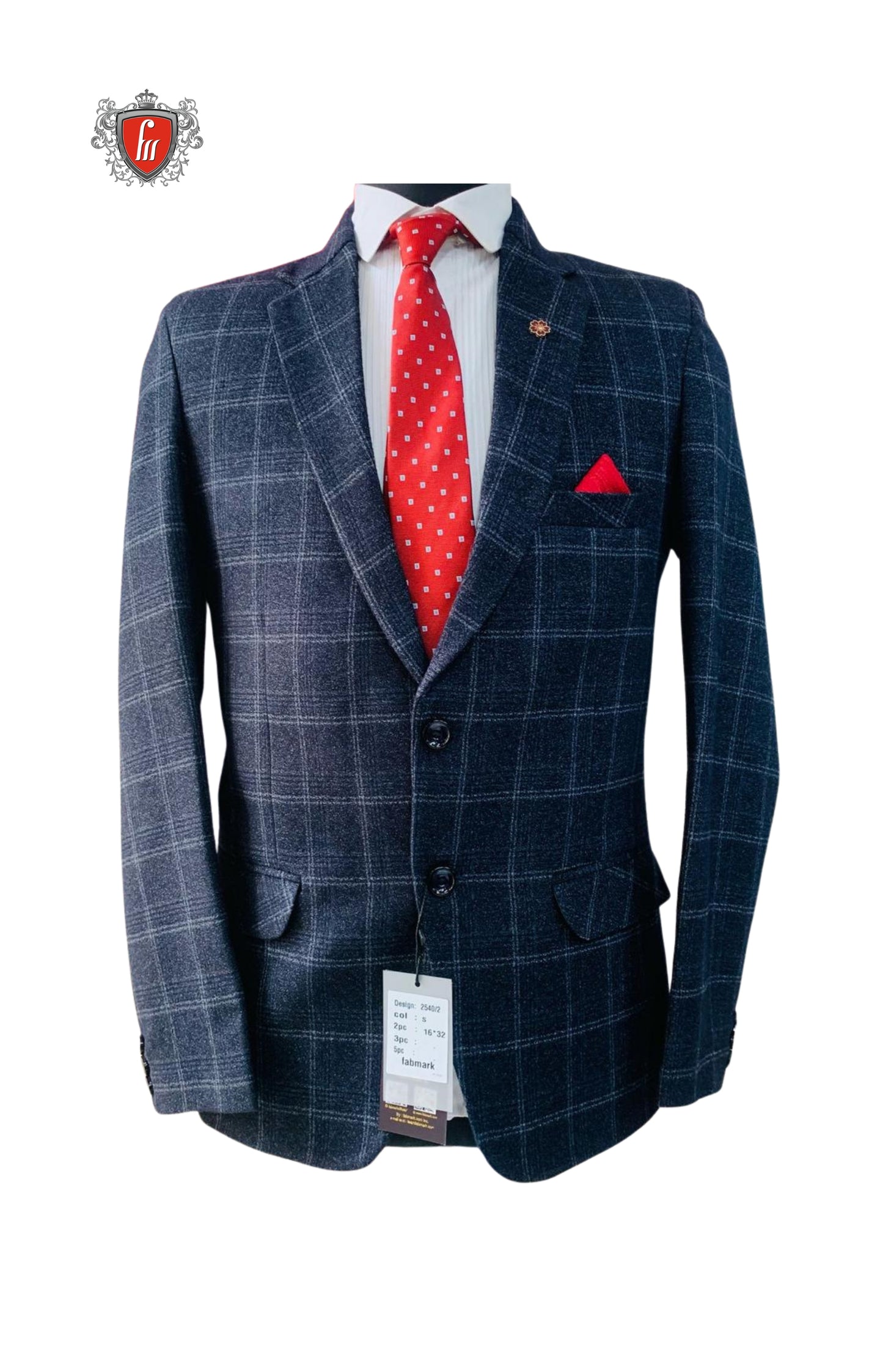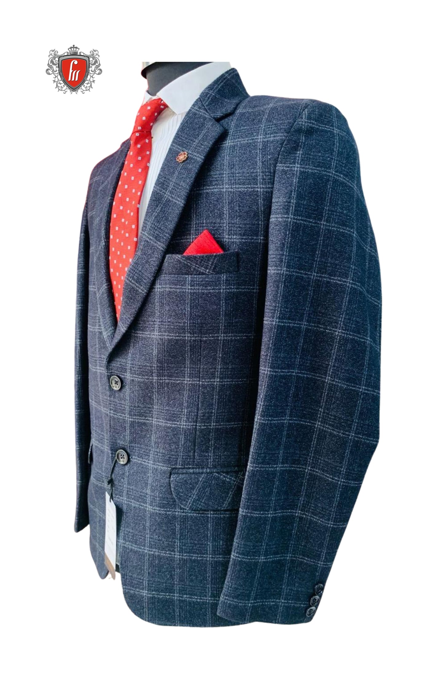 Men’s Modern Slate Check Blazer – Tailored Fit Wedding & Office Wear